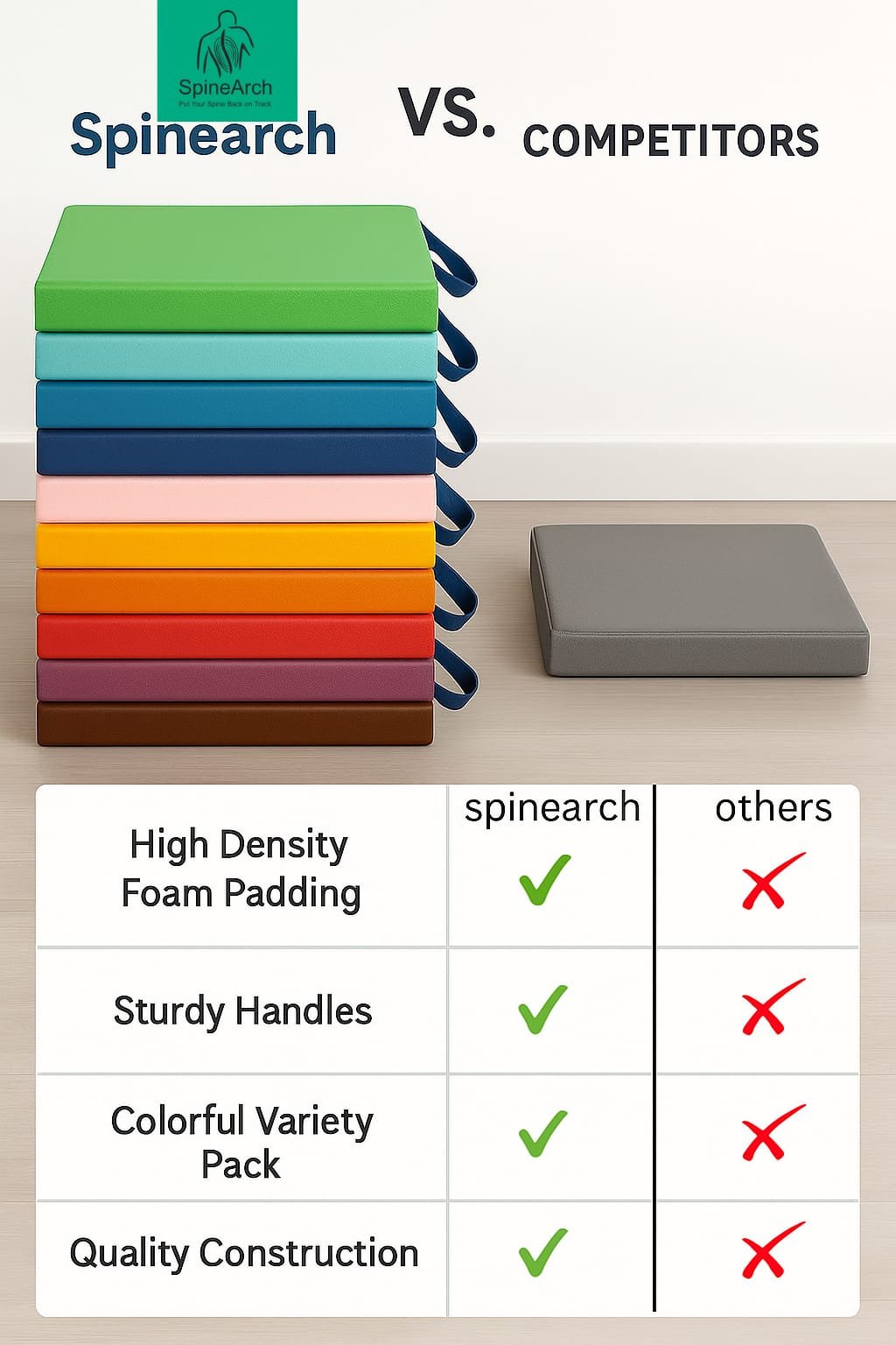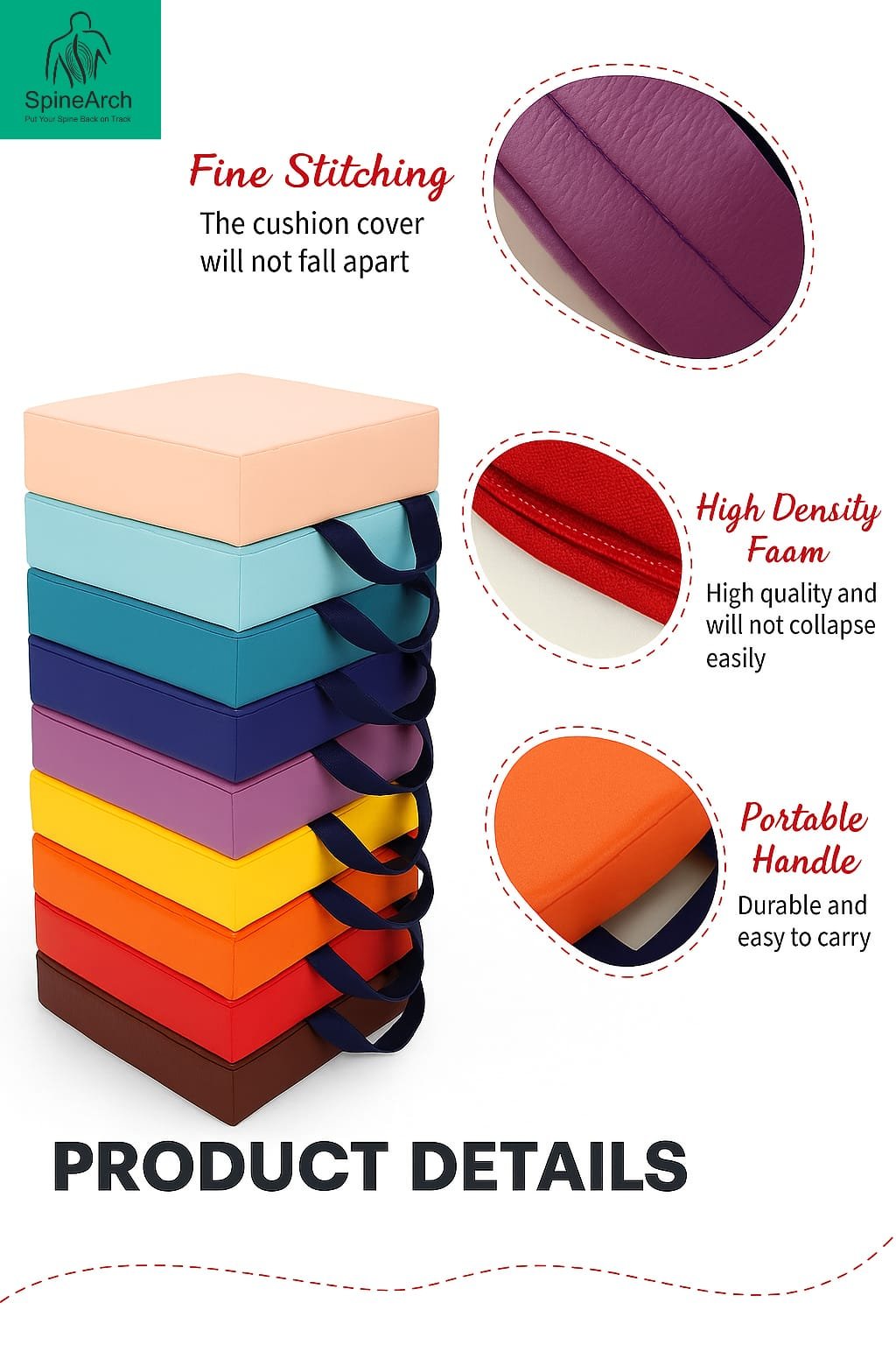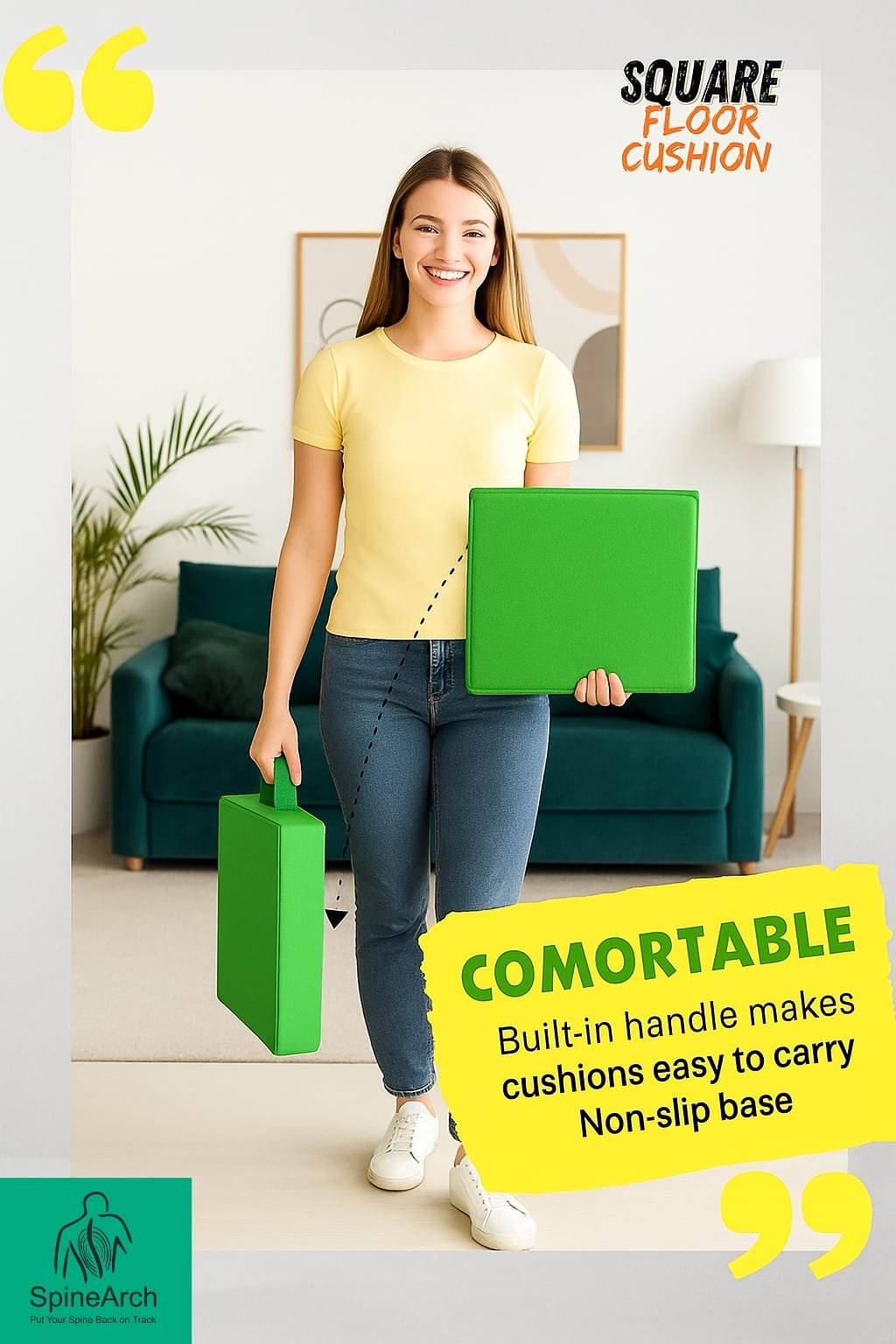 • Ergonomically designed square shape for balanced seating support